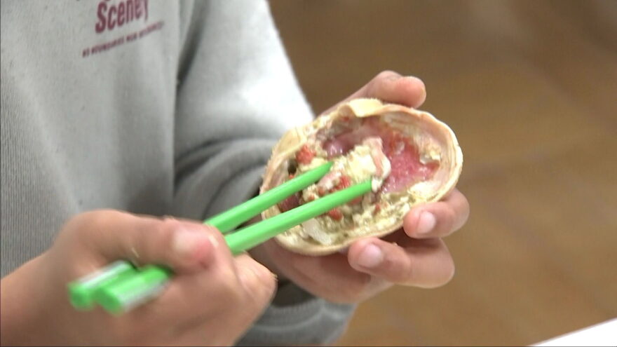 子どもたちは、先生に食べ方などを教えてもらいながら、「新鮮でおいしい」「甘くておいしい」とセコガニを頬張っていました。